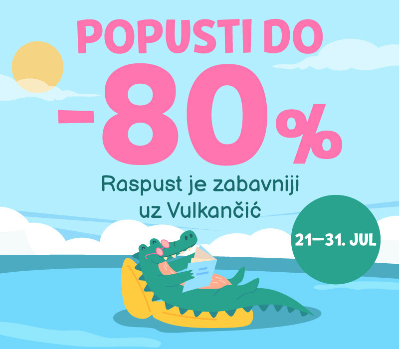 Od 21. do 31. jula – 100 knjiga za decu i 100 knjiga za odrasle iz svih žanrova po specijalnim letnjim cenama! Sunce, odmor i dobra knjiga – savršen recept za leto koje pamtimo. Vulkan izdavaštvo vas poziva da iskoristite tople dane na najbolji mogući način – u društvu knjiga koje inspirišu, zabavljaju i pokreću maštu. Od 21. do 31. jula, samo na sajtu vulkani.rs, očekuje vas ekskluzivna letnja akcija – popusti do čak 80% na pažljivo odabrane naslove.