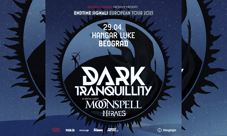 Dugoiščekivani koncert metal giganata Dark Tranquillity i Moonspell konačno će se desiti u utorak, 29. aprila u beogradskom Hangaru. U sklopu velike evropske turneje “Endtime Signals” uz njih nastupa i sjajni nemački Hiraes.
