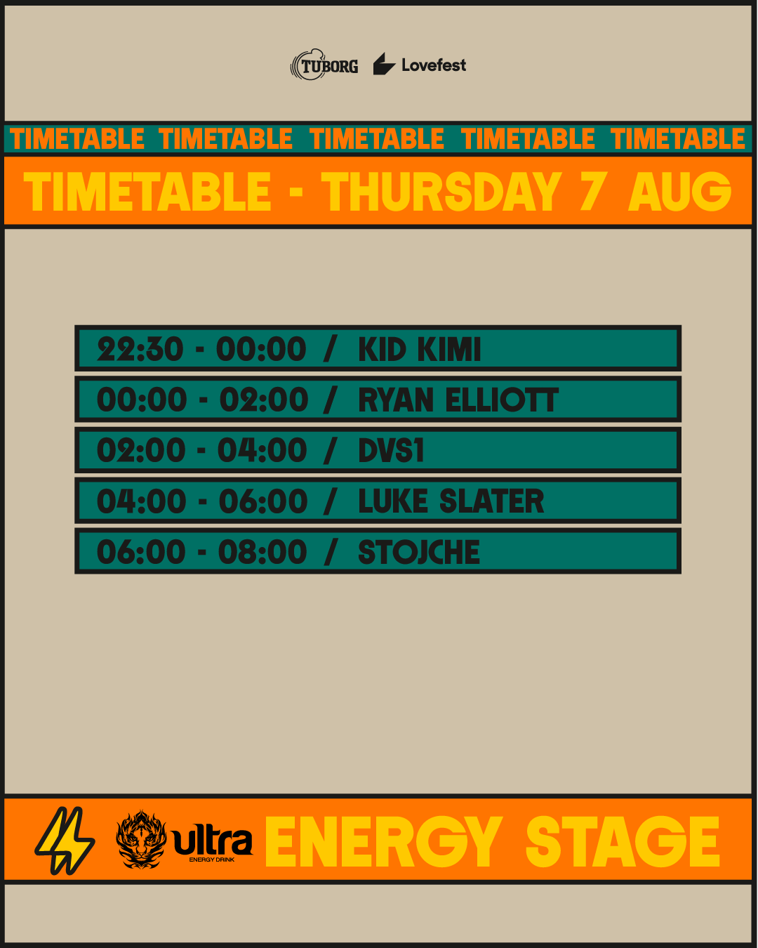 Na Ultra Energy Stage-u četvrtkom vlada poseban underground duh. Berghain rezidenti Ryan Elliott, DVS1, Luke Slater i Stojche donose prepoznatljiv berlinski zvuk.