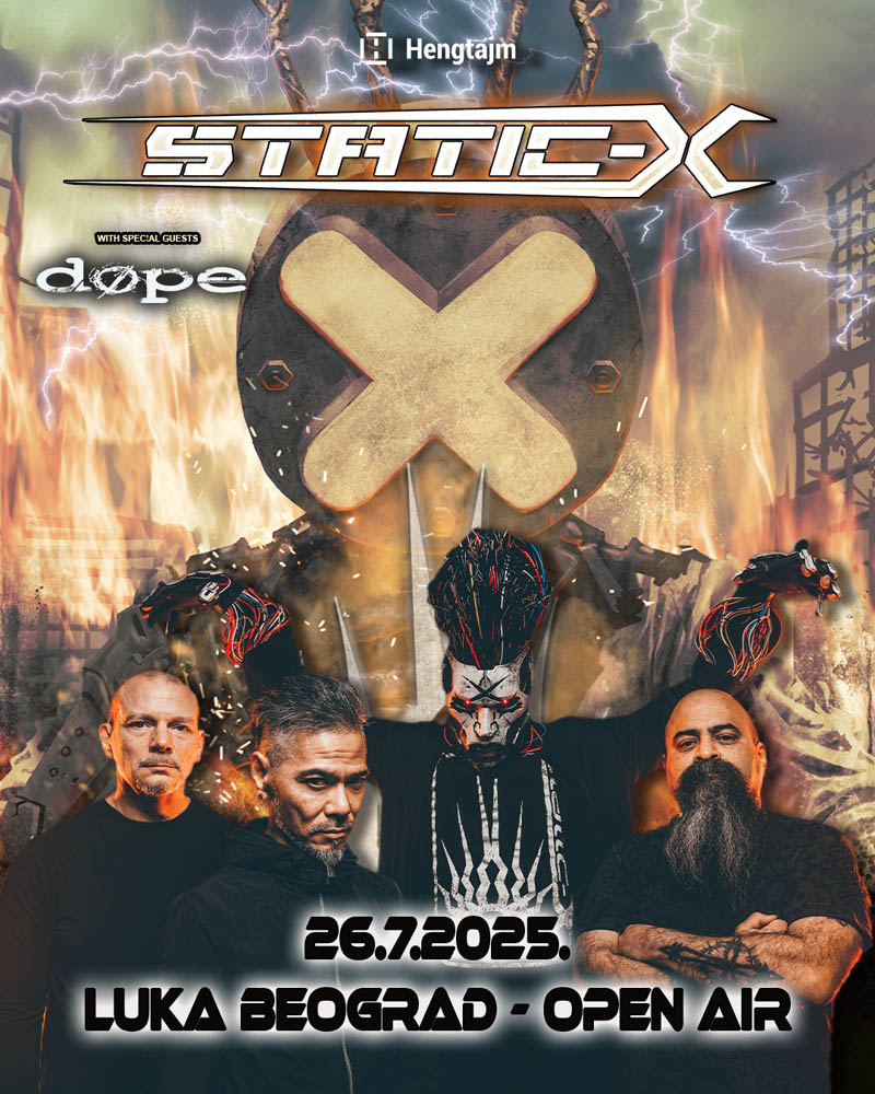 LETO ZA HENGOVANJE se opasno zahuktava: nakon antologijskog koncerta W.A.S.P.-a i koncerta The Sisters of Mercy koji će se desiti u četvrtak, Hengtajm donosi pravi nu metal spektakl. Na otvorenoj bini Luke Beograd (OpenAir Corner, kod Hangara) ove subote (26. jula) domaćoj publici će se premijerno predstaviti Static-X i DOPE u sklopu evropskih turneja na kojima dele dosta pozornica, a upravo će Beograd za oba benda biti početna stanica.
